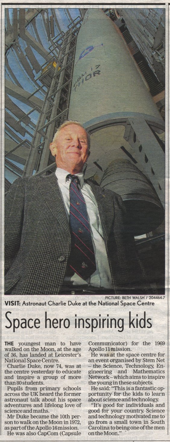 Over the years visitors to the National Space Centre have included astronauts Buzz Aldrin, Charlie Duke, Helen Sharman, Michael Foale, and Piers Sellars.