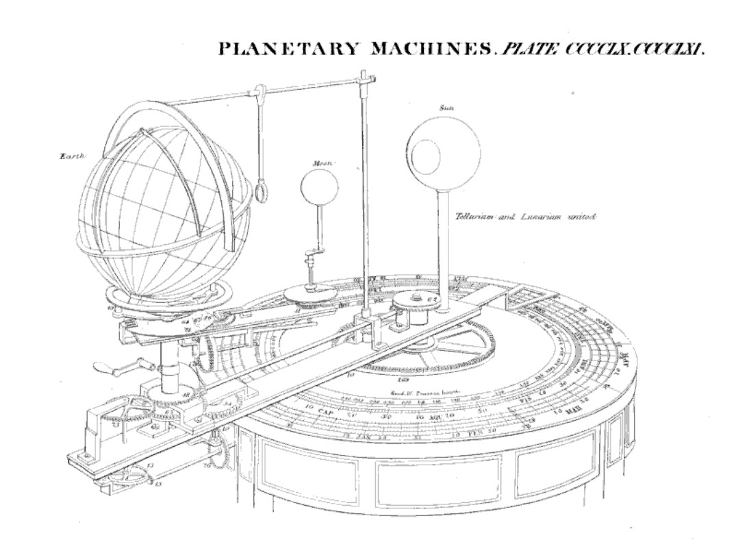 Brewster, David, The Edinburgh Encyclopaedia, Volume XVI, 'Planetary Machines', 1830. pp 646-651, Plates CCCCLX, CCCCLXI, CCCCLXII.