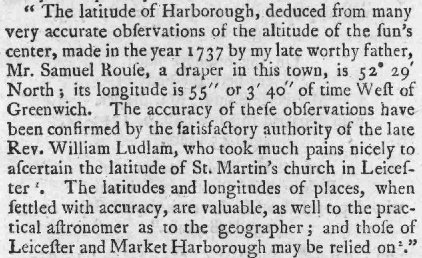 ![]() Rouse's determination of the latitude and longitude of Market Harborough confirmed by William Ludlam.